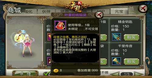 想壹睹大理淑妃的姿色,就快去天龍江湖中尋找吧。所謂:愛美之心,人皆有之。翻開【葉蕾初曉】福袋就有機會取得隨機數量的大理淑妃佳人碎片,更能直接取得完好的大理淑妃佳人!